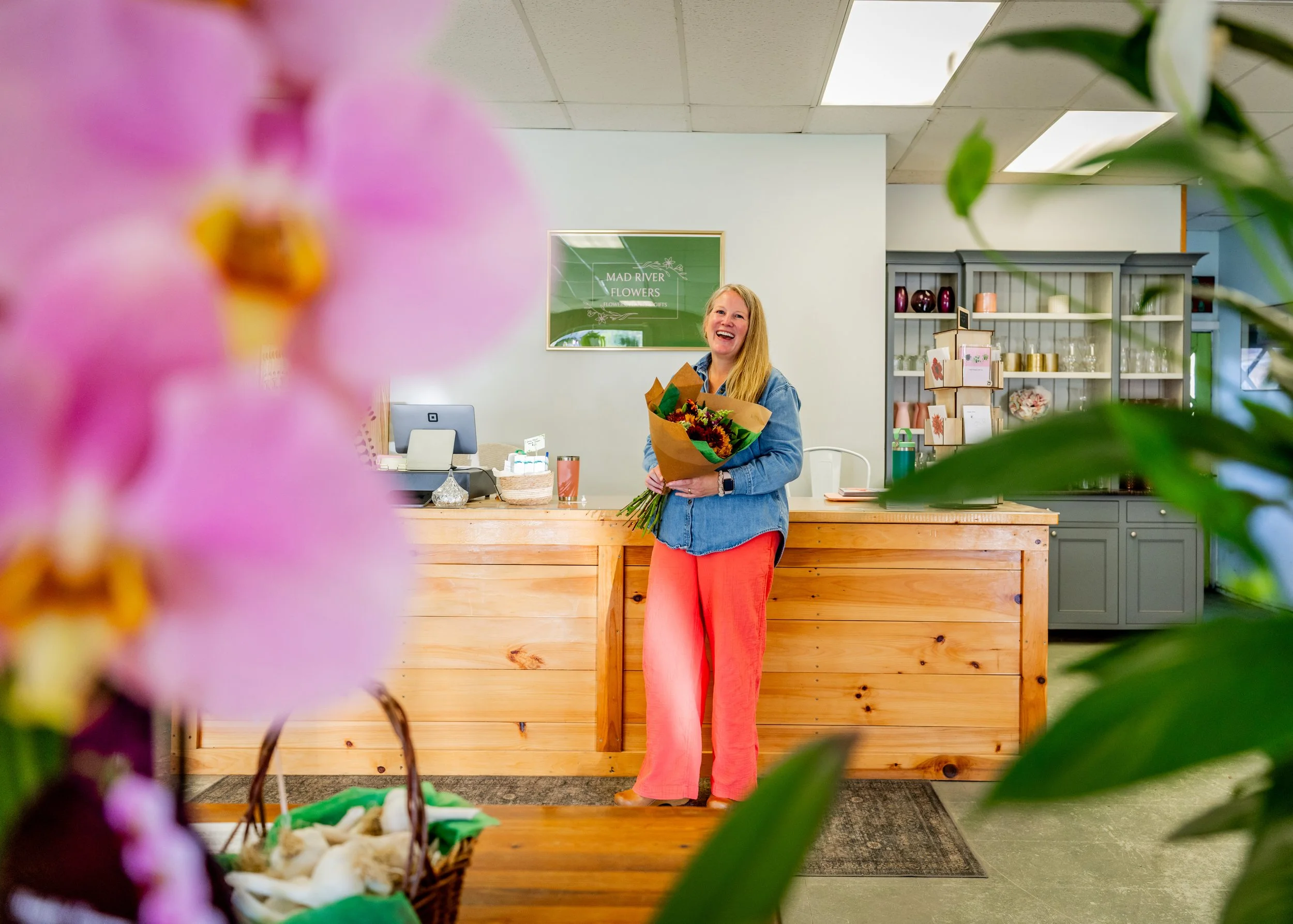 Hi, I’m Kelly — the heart behind Mad River Flowers. What started as a long-time dream has grown into a cozy flower shop where beauty, creativity, and community come together.